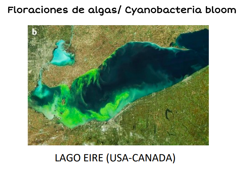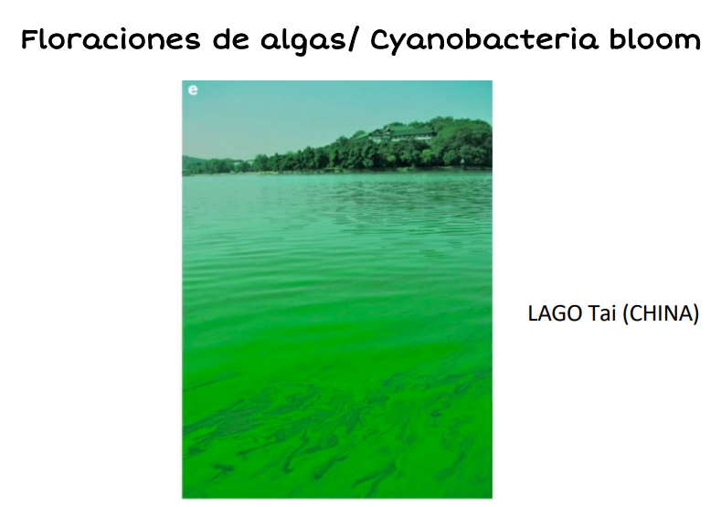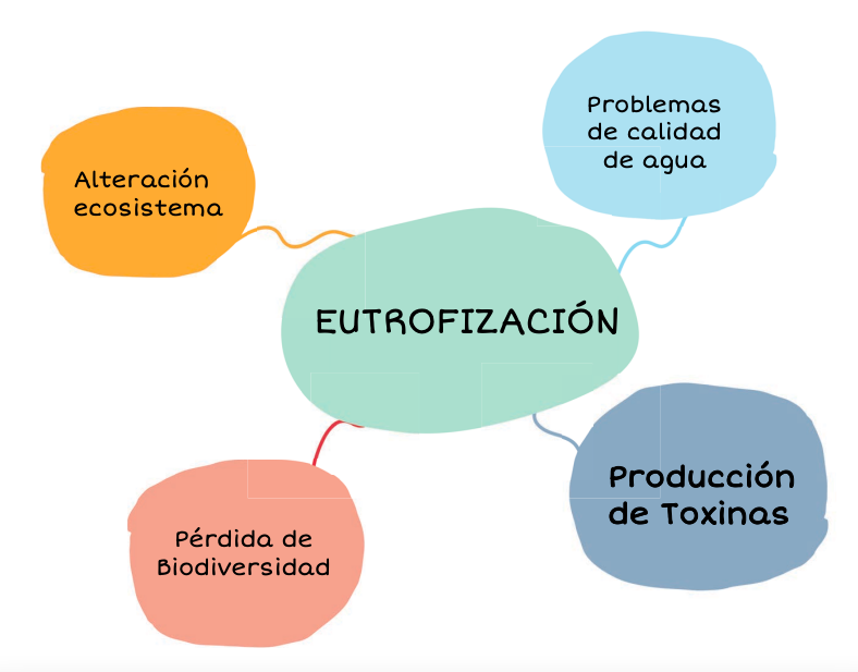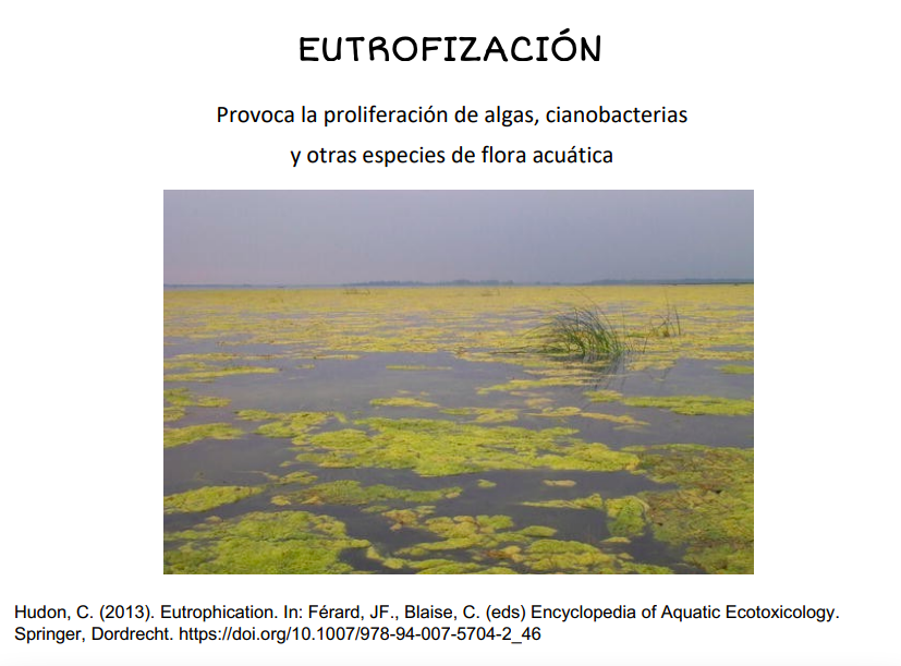 Provoca la proliferación de algas, cianobacterias y otras especies de flora acuatica