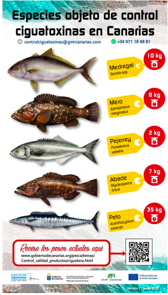 (Imágenes y tablas de control de ciguatoxinas en Canarias)