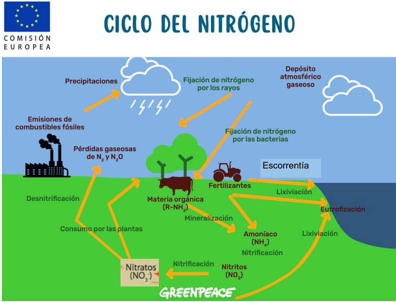 Eutrofización: La eutrofización es un proceso de contaminación de ecosistemas acuáticos que resulta del exceso de nutrientes, principalmente nitrógeno y fósforo, que provoca un crecimiento masivo de algas y materia orgánica